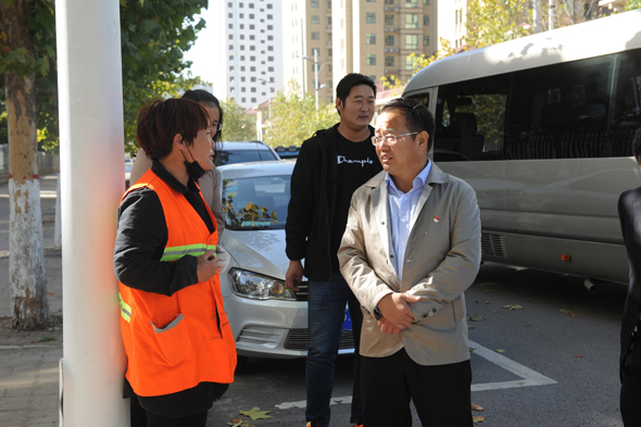 督導(dǎo)中,張建黨親切地與環(huán)衛(wèi)工人進(jìn)行交談,了解他們的工資收入狀況及是否買(mǎi)了人身保險(xiǎn)等情況,并勉勵(lì)他們一定要盡職盡責(zé),當(dāng)好城市的“美容師”。