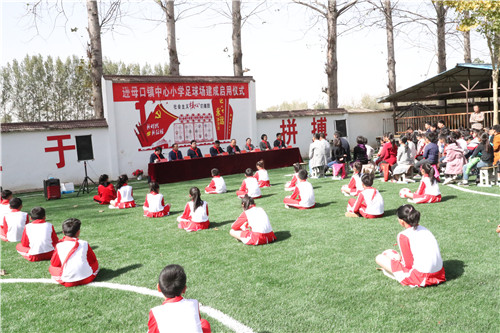 啟用儀式上,該縣遜母口鎮(zhèn)中心小學(xué)的學(xué)生們愉快地表演了足球操,少先隊(duì)員分別向領(lǐng)導(dǎo)和嘉賓佩戴紅領(lǐng)巾表達(dá)感恩之情。河南省第十三屆人大代表張華女士代表足球場(chǎng)捐建單位講話。張華說(shuō),當(dāng)前,隨著脫貧攻堅(jiān)深入開(kāi)展,家鄉(xiāng)的各項(xiàng)事業(yè)蓬勃發(fā)展。作為遜母口鎮(zhèn)的一員,看到家鄉(xiāng)這些年翻天覆地的變化,感到特別喜悅。作為一名省人大代表,為助力家鄉(xiāng)脫貧攻堅(jiān),同時(shí)落實(shí)“脫貧攻堅(jiān)人大代表在行動(dòng)”號(hào)召,便決定投資50萬(wàn)元為遜母口鎮(zhèn)中心小學(xué)建立一個(gè)高標(biāo)準(zhǔn)的踢足場(chǎng),滿足孩子們踢足球的愿望。
