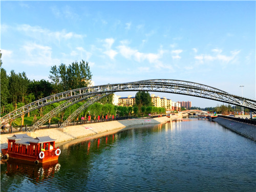 統(tǒng)計數(shù)據(jù)顯示,貫穿城區(qū)“五河”的濱水景觀廊道目前已達45公里,環(huán)繞互通的水系雨污分流,清波蕩漾,千年古城活力再現(xiàn);沿岸廣場、游園、玉欄、花木、亭、廊、親水平臺,玲瓏別致,相映成趣,形成了無數(shù)個多元空間,為市民提供了休閑健身空間和漫步快跑的理想場所;城區(qū)的50多座街心主題文化園,依勢而修,與沿河的美化、綠化、亮化融為一體,每天傍晚,清波蕩漾,虹橋飛架,臥波噴泉伴隨著悠揚的音樂翩翩歡舞,“五河”上下,燈火璀璨,絢麗多彩,如夢如幻?!熬藕永@真源,五湖潤鹿邑”的生態(tài)水系景觀讓行走其間的人恍若走進江南水鄉(xiāng),人在水上,水在畫中的美妙意境讓行走其間的人身心放松、回歸自然。