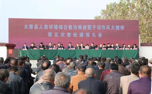 11月9日,太康縣人居環(huán)境綜合整治推進(jìn)會(huì)暨干部作風(fēng)整頓第五次查處通報(bào)大會(huì)在該縣城郊鄉(xiāng)池莊行政村召開。王國(guó)璽、李錫勇、王程清、張思民、王建林等縣四個(gè)班子領(lǐng)導(dǎo)、市脫貧攻堅(jiān)第四督查巡查組組長(zhǎng)李煒和縣副處級(jí)以上領(lǐng)導(dǎo)及該縣縣直、各鄉(xiāng)鎮(zhèn)負(fù)責(zé)人參加會(huì)議。會(huì)議由縣委副書記、政法委書記王程清主持。縣委書記王國(guó)璽指出,人居環(huán)境綜合整治是鄉(xiāng)村振興的基礎(chǔ)工程、是脫貧摘帽的形象工程、是環(huán)保攻堅(jiān)的保障工程、是農(nóng)村生活的清潔工程、是執(zhí)政能力的標(biāo)志工程,必須抓好抓實(shí)。