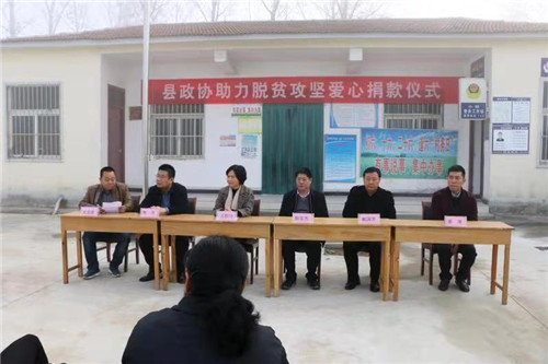 11月13日,在扶溝縣桐丘街道辦事處小胡行政村村委院內(nèi),縣政協(xié)副主席郝寶杰將市、縣政協(xié)委員們捐贈(zèng)的2萬(wàn)元錢交到小胡、東五村黨支部書(shū)記手中,也將政協(xié)委員對(duì)脫貧攻堅(jiān)事業(yè)的愛(ài)心傳導(dǎo)到貧困戶的心中。