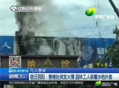 9月5日上午10時(shí)許,江蘇省泗陽縣北京東路塞納公館營(yíng)銷中心因招牌頂部電焊火星濺落,致使門頭起火。起火點(diǎn)距離地面約5米,滅火器等常用滅火設(shè)備無法起作用。為防止意外,售樓處工作人員及時(shí)疏散群眾,同時(shí)撥打119救火電話。就在此時(shí),身為泗陽縣園林綠化管理處的技術(shù)員曹書志,正開著灑水車進(jìn)行綠化帶澆水作業(yè),見到路邊濃煙滾滾,火勢(shì)兇猛,曹書志二話不說,立刻把灑水車開到著火點(diǎn),不顧生命危險(xiǎn)下車,和其他3名工人,迅速打開前噴水頭和后部水炮供水的副發(fā)動(dòng)機(jī)進(jìn)行滅火,在持續(xù)噴射十余分鐘后成功將火撲滅。