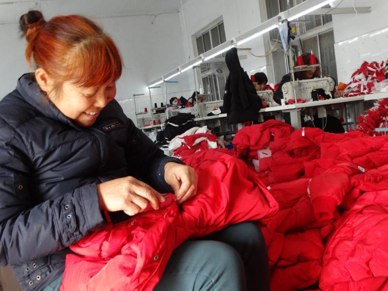 近年來(lái),沈丘縣在打響脫貧攻堅(jiān)戰(zhàn)和鞏固提升脫貧攻堅(jiān)成果工作中,大力發(fā)展家庭手工業(yè),帶動(dòng)全縣5000余名留守婦女家門口就業(yè),年人均增收2萬(wàn)元。左圖為11月19日,周營(yíng)鎮(zhèn)馬營(yíng)村留守婦女高英在一個(gè)兒童服裝加工點(diǎn)忙著剪線頭。②5 謝辛凌 攝