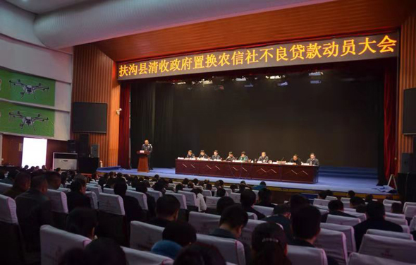 11月21日,扶溝縣召開政府置換農(nóng)信社不良貸款清收工作動員會。會議貫徹落實省、市有關部署,動員全縣上下統(tǒng)一思想,提高認識,細化措施,夯實責任,推動政府置換農(nóng)信社不良貸款清收工作深入開展、取得實效。張穎波、張峰、王偉、常青、王霄靈、陳建華、李建設等縣領導出席會議。縣委副書記、政法委書記張峰主持會議。