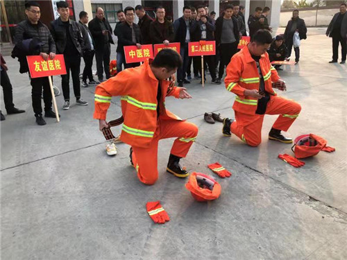 來自消防安全重點單位的8個代表隊作為第一支隊伍進行體能、技能競賽。體能技能競賽設(shè)有兩盤水帶連接、50米負重跑、原地著戰(zhàn)斗服和俯臥撐4個項目,參賽隊員斗志昂揚、技能精湛,充分的展示了微型消防站建設(shè)取得的成績和微型站隊員敢打必勝的良好精神風(fēng)貌,為首屆行業(yè)系統(tǒng)微型消防站業(yè)務(wù)技能比武大賽開了一個好頭。