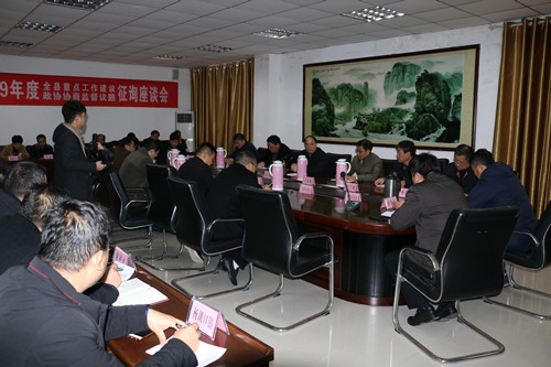 12月6日上午,鹿邑縣政協(xié)主席雷申主持召開“2019年度全縣重點工作建議和縣政協(xié)協(xié)商監(jiān)督議題征詢座談會”。政協(xié)副主席丁顯輝、黨組副書記胡立柱,副主席李蘭明、宋克言等出席會議。全縣各鄉(xiāng)鎮(zhèn)、辦事處政協(xié)聯(lián)絡(luò)組長參加會議,并分別圍繞“三大攻堅戰(zhàn)”、農(nóng)村人居環(huán)境改善及產(chǎn)業(yè)發(fā)展、城市管理等民生問題,積極進行協(xié)商建言。政協(xié)機關(guān)副科級以上干部參加座談會。