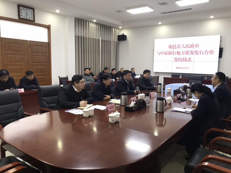 12月17日,鹿邑縣人民政府與中原銀行地方債券發(fā)行合作簽約儀式舉行??h委常委、常務副縣長陸志杰,老子學院黨組副書記、交通局局長王初立,中原銀行周口分行黨委副書記、副行長周朝陽出席簽約儀式。縣財政局、教體局、住建局、林業(yè)局、發(fā)改委、老子文化產業(yè)園及投資公司等相關單位負責同志參加會議。