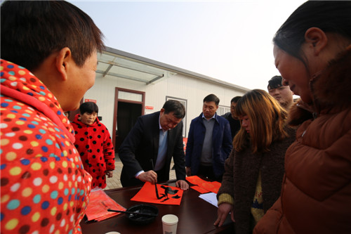 李宗喜一邊寫春聯(lián),一邊詢問居民生活情況。冬天住這兒冷不冷?超市里的東西貴不貴?住在這里安全不安全?他問得很細(xì)。劉愛菊、朱桂英、王芬、李會(huì)等住戶,你一言我一語,紛紛說出自己的感受:“冬天有空調(diào),不冷!”“超市里的東西跟外面一樣便宜!”“小區(qū)有監(jiān)控和保安,住在這里很安全。”有的甚至幽默地說:“我在這里都住習(xí)慣了,感覺挺好,以后就不搬走了!”聽到這話,眾人都笑了起來。