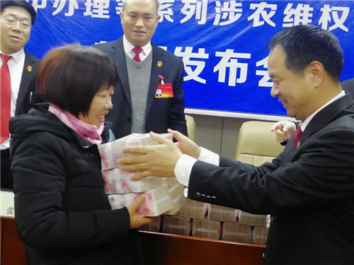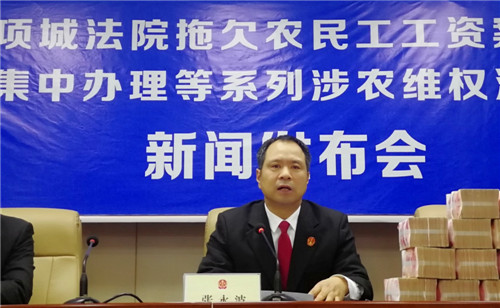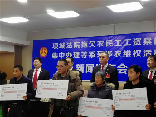 “感謝項(xiàng)城法院的領(lǐng)導(dǎo),他們一心為民,克服種種困難,幫助我們要回了血汗錢(qián)。”12月24日,項(xiàng)城法院拖欠農(nóng)民工工資案件集中辦理等系列涉農(nóng)維權(quán)活動(dòng)新聞發(fā)布會(huì)在該院召開(kāi),16名涉農(nóng)維權(quán)案件當(dāng)事人從項(xiàng)城法院黨組成員、院長(zhǎng)張永波的手中接過(guò)索要許久的血汗錢(qián),喜極而泣。
