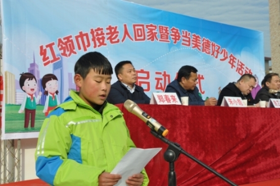 12月29日下午,在商水縣姚集鎮(zhèn)舉行的“紅領(lǐng)巾接老人回家暨爭當(dāng)美德好少年”活動 啟動儀式上,姚集鎮(zhèn)盧廟小學(xué)六年級學(xué)生張吉慶用幼稚童音朗誦的《用愛接爺爺奶奶 回家》,感動了在場的來自各鄉(xiāng)鎮(zhèn)的數(shù)百名鄉(xiāng)村干部?!昂⒆又v的好,我們一定配合 鄉(xiāng)政府把獨(dú)居老人戶清零工作做好做實,讓老人們年年過暖冬?!睖f鄉(xiāng)中心校長戚 二中會后告訴記者。