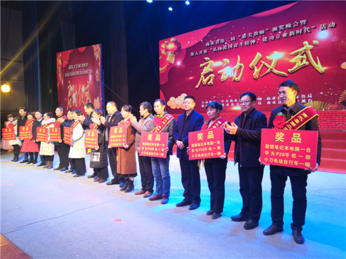 到場領(lǐng)導(dǎo)為十位最美教師頒發(fā)手機(jī)、筆記本電腦、電動(dòng)車等獎(jiǎng)品,與他們合影留念。