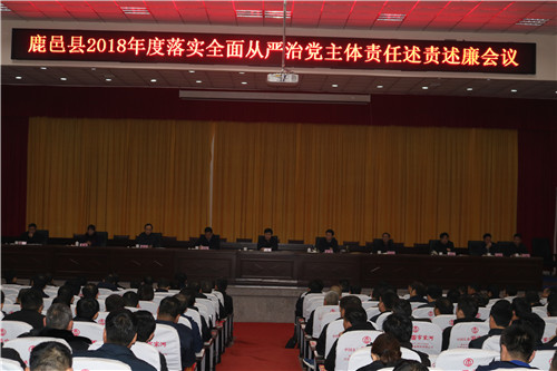 1月4日上午,鹿邑縣2018年度落實(shí)全面從嚴(yán)治黨主體責(zé)任述責(zé)述廉會(huì)議在縣委黨校一樓報(bào)告廳召開(kāi)??h委書記梁建松出席會(huì)議并講話??h委常委、紀(jì)委監(jiān)察委主任韓林主持會(huì)議??h直各局委主要負(fù)責(zé)人、派駐紀(jì)檢組、巡查辦主要負(fù)責(zé)人以及各鄉(xiāng)鎮(zhèn)辦事處黨(工)委書記、紀(jì)檢書記參加會(huì)議。