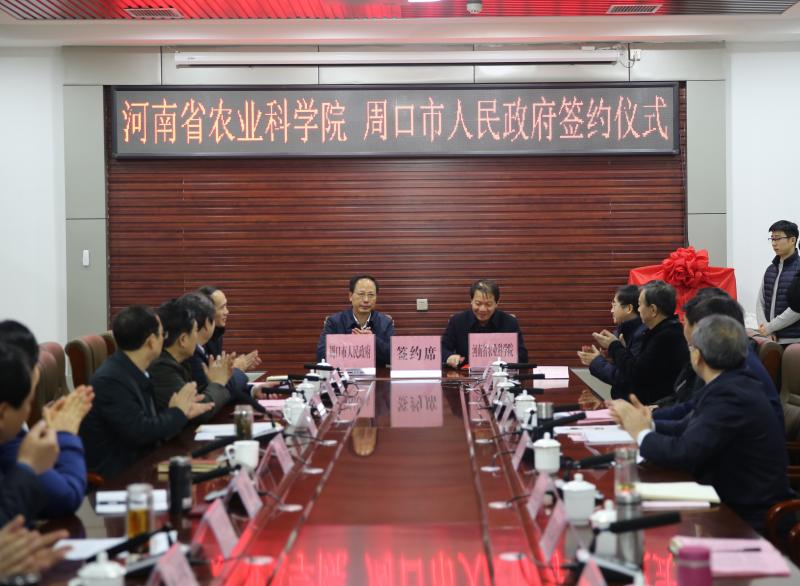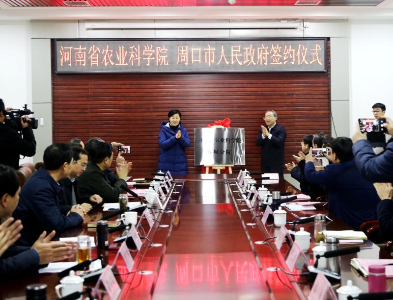 1月9日,河南省農(nóng)業(yè)科學(xué)院與周口市人民政府簽訂全面戰(zhàn)略合作協(xié)議暨河南省農(nóng)業(yè)科學(xué)院鄲城分院揭牌儀式在鄲城舉行,中國(guó)工程院院士、省農(nóng)科院院長(zhǎng)張新友,省農(nóng)科院副院長(zhǎng)衛(wèi)文星,副市長(zhǎng)張廣東,以及鄲城縣委書記羅文閣、縣長(zhǎng)李全林等相關(guān)負(fù)責(zé)同志參加儀式。