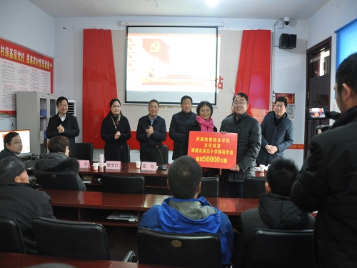 作為河南省人民檢察院的直屬學校,河南檢察職業(yè)學院也積極參與瓦房莊的脫貧攻堅工作。在當日舉行的河南檢察職業(yè)學院文化扶貧啟動儀式上,他們不僅送來了精彩的黨課,還為該村小學捐贈現(xiàn)金5萬元,用于村小學操場硬化,改善辦學條件。