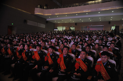 熠熠金盾耀新春,崢嶸歲月訴衷腸。1月24日晚,鹿邑縣文化中心大會(huì)堂里座無虛席,鹿邑縣公安部門在這里隆重舉行“2018忠誠記憶”職業(yè)榮譽(yù)頒獎(jiǎng)儀式??h領(lǐng)導(dǎo)李剛、李國際、雷申、侯自峰、陳巍、何新敏、齊梅英等和公安民警、警屬代表等共千余觀眾在現(xiàn)場(chǎng)共同見證。
