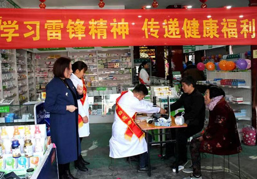 西華縣北華醫(yī)藥黨支部組織黨員志愿者為群眾量血壓、測血糖,免費發(fā)放鈣片、提供茶水等義務服務活動。