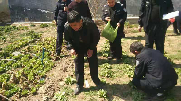 3月15日,大王莊派出所民警在簸箕劉村排查時,發(fā)現(xiàn)劉某家外菜地種植罌粟原植物6000株,經(jīng)訊問,劉某對種植罌粟行為供認不諱;3月16日上午,民警在大王莊鄉(xiāng)王金莊村王某家菜地發(fā)現(xiàn)罌粟苗2980株,當民警向其講明種植罌粟的危害后,王某對種植罌粟苗治腰疼病的行為悔恨不已;當日下午,民警在大王莊鄉(xiāng)方莊村走訪中,發(fā)現(xiàn)在一片大蒜地里密密麻麻種植的罌粟,經(jīng)清點為2001株,還有部分被黑色的障礙物遮擋住,經(jīng)調查系村民方某種植。