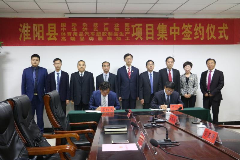 本次會議共簽約四個項目,總投資約17.5億元。分別是:河南龍都文化娛樂有限公司投資5.1億元的國際產(chǎn)業(yè)園項目。翰高兄弟(北京)投資集團投資10億元的中華姓氏博物館項目。東莞啟昊服飾有限公司投資1.2億元的高檔服飾加工項目;溫州奕銘新材料股份有限公司投資1.2億元的體育及汽車用品項目。