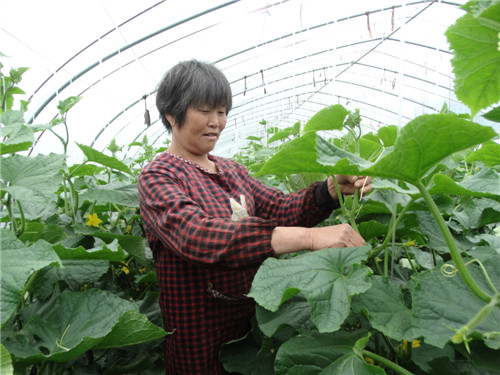 4月24日,沈丘縣周營鎮(zhèn)趙莊村生態(tài)蔬菜大棚基地里,綠油油的吊蔓黃瓜長勢喜人,少量已采摘上市。忙碌著的菜農王翠霞告訴記者:“俺今年種了20畝地的大棚黃瓜,從種子肥料,到用水用藥,都有講究,要按標準化生產,這樣種出來的黃瓜品質好,客商搶著要。一畝地大棚瓜果蔬菜的年收入超過1.5萬元?!?/p>
