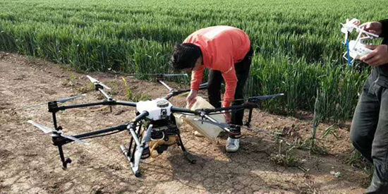 時近立夏,抽穗揚花。河南省農(nóng)業(yè)科學(xué)院鄲城分院充分把握小麥產(chǎn)量的關(guān)鍵時期,開展小麥病蟲害統(tǒng)防統(tǒng)治,該院引入植保無人機開展病蟲害飛防作業(yè)。