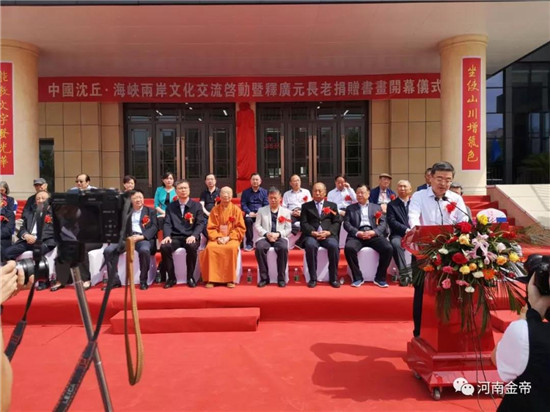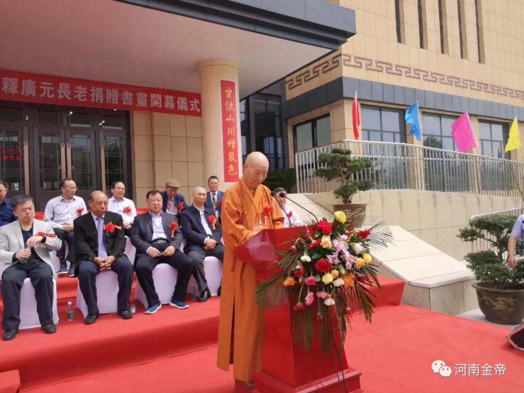 釋廣元長老在致辭中說,多年來雖身在臺灣,卻時刻心系故土,為推動兩岸同胞心靈契合、深化兩岸文化交流中貢獻自己的綿薄之力。希望此次無條件捐贈的藝術館古今名家書畫數(shù)百幅,能為家鄉(xiāng)文化建設貢獻微薄之力。同時提議將釋廣元藝術館更名為“沈丘藝術館”,為沈丘文化的發(fā)展繁榮注入新的生機和活力。