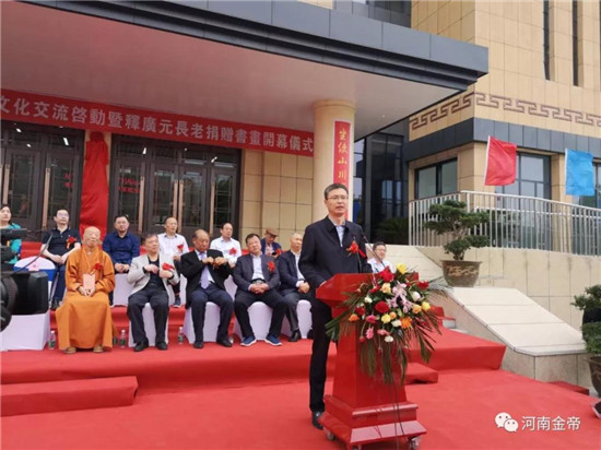 省文聯(lián)黨組書記王守國在開幕式上說,釋廣元長老不顧90多歲高齡,帶領50多名臺灣同胞,過??缃瑯s歸故鄉(xiāng),出席捐贈活動,這不僅匯融了釋廣元長老的“鄉(xiāng)愁”情節(jié),更是釋廣元長老不忘初心,反哺家鄉(xiāng)情懷的具體體現(xiàn)。希望越來越多的臺灣同胞蒞臨河南,感悟中原,融入中原,攜手并進砥礪前行共筑中國夢!