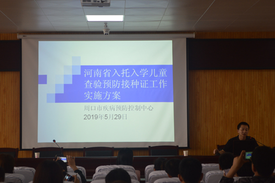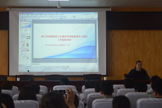為進(jìn)一步加強(qiáng)全區(qū)創(chuàng)衛(wèi)健康教育和健康促進(jìn)、入托入學(xué)兒童預(yù)防接種、病媒生物防制工作,確保創(chuàng)衛(wèi)工作順利推進(jìn),川匯區(qū)教育系統(tǒng)于5月29日召開(kāi)創(chuàng)衛(wèi)專干培訓(xùn)會(huì)。來(lái)自全區(qū)教育系統(tǒng)的各個(gè)學(xué)校負(fù)責(zé)人和創(chuàng)衛(wèi)專干共計(jì)100多人參加會(huì)議。