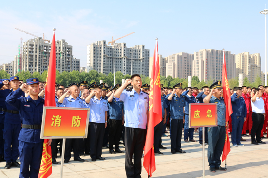 5月30日上午,鹿邑縣在縣文化中心廣場(chǎng)舉行應(yīng)急救援隊(duì)授旗宣誓儀式,縣委常委、常務(wù)副縣長陸志杰現(xiàn)場(chǎng)為全縣新整合的15支專、兼職應(yīng)急救援隊(duì)伍授旗,各應(yīng)急救援隊(duì)伍在推選代表的帶領(lǐng)下,共同舉起右手進(jìn)行了莊嚴(yán)的宣誓儀式。