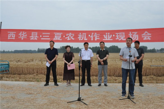 “麥浪滾滾閃金光,秣馬厲兵迎三夏”。值此三夏大忙到來之際,6月1日上午,西華縣農(nóng)機局在東王營鄉(xiāng)東王營村舉辦三夏農(nóng)機作業(yè)現(xiàn)場會,周口市農(nóng)機局黨組書記、局長劉偉,西華縣委副書記、政法委書記程維崢,縣政府副縣長毛茹,東王營鄉(xiāng)黨委、政府主要負(fù)責(zé)同志,各鄉(xiāng)鎮(zhèn)、辦事處分管農(nóng)業(yè)農(nóng)村工作副職,東王營鄉(xiāng)部分村支部書記,縣農(nóng)機局全體干部職工和部分農(nóng)機合作社理事長等共80余人參加了演示會。
