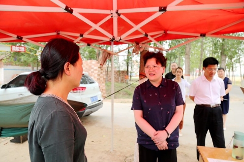 “今年小麥產量怎么樣?”“俺村一般畝產在1000斤至1200斤,最少的也不低于800斤?!薄皩斩捊麩銈兌疾扇×四男┚唧w措施?”“村里規(guī)定,秸稈一律不許進村。收割機直接把秸稈直接打成捆后,賣給縣國能生物發(fā)電公司?!痹诤袜崬炒妩h支部書記趙迎禮的問答中,張穎波對麥收相關工作進行了詳細了解。據(jù)天氣預報,近日扶溝將迎來一場中到大雨,給麥收工作將帶來不利影響,張穎波對此甚為關注。她叮囑鄉(xiāng)村干部要搶抓時間,組織機械、人工加大麥收力度,確保成熟小麥“顆粒歸倉”。對缺少勞動力的貧困戶等,鄉(xiāng)村干部要加強幫扶,發(fā)動群眾助收,不讓每一戶群眾為收麥發(fā)愁。