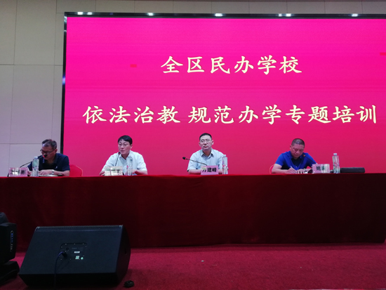 7月4日上午,川匯區(qū)民辦學(xué)?!耙婪ㄖ谓?規(guī)范辦學(xué)”專(zhuān)題培訓(xùn)班在周口新星學(xué)校體育館多功能廳舉行。川匯區(qū)教體局黨組書(shū)記、局長(zhǎng)徐德志致辭,培訓(xùn)班由方建鋒博士主講。來(lái)自川匯區(qū)民辦中小學(xué)、幼兒園校(園)長(zhǎng)等學(xué)校100余人參加培訓(xùn)。