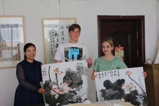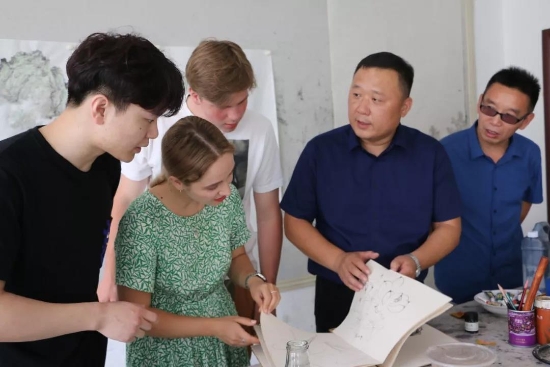 鹿邑本土畫家劉龍飛畫的花鳥栩栩如生引起俄羅斯青年畫家們的嘖嘖稱嘆。兩位青年畫家通過翻譯告訴記者,中國畫歷史悠久、博大精深,看到兩位老師的畫作形神兼?zhèn)洌瑲忭嵣鷦?,真是不虛此行,感謝贈送的佳作,他們一定珍藏。據(jù)悉,本次活動他們將以國際藝術(shù)志愿者的身份、以西方人的視角描繪老子故里的美景,他們走進(jìn)明道宮、太清宮等景點(diǎn)實(shí)地寫生,并走美術(shù)學(xué)校為孩子們輔導(dǎo)繪畫并帶來世界名校的繪畫理念。