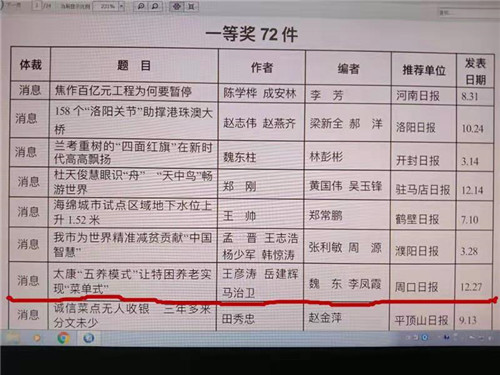 據介紹,本屆河南新聞獎獲獎作品具有“把握時代脈搏 謳歌時代精神”“反映重大主題 積極服務大局”“講述中國故事 彰顯主流價值”等特點,主題深刻、事實準確、文風生動、表現新穎,充分反映我省新聞戰(zhàn)線積極宣傳報道黨的十八大以來我省發(fā)展的歷史成就、歷史變革,報道我省各行各業(yè)改革開放的豐碩成果和感人事跡,特別是聚焦打贏精準扶貧攻堅戰(zhàn),形成宣傳的強大聲勢。作品堅持正確的輿論導向、唱響主旋律、大力宣傳社會主義核心價值觀,為新時代中原更加出彩提供強有力的輿論支撐和良好的輿論氛圍?!短怠拔屦B(yǎng)模式”讓特困養(yǎng)老實現“菜單式”》具有“重大題材”“重大影響”“重大意義”等特點,經過專家層層評審,最終在眾多參評作品中脫穎而出,一舉奪得了河南新聞獎一等獎。