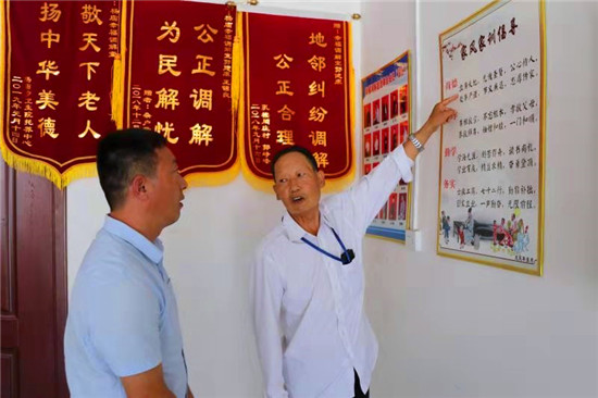 老人說,他是2018年初加入“幸福調(diào)解室”的,“當時,我剛從外地回來,路過楊廟看到有人臨街房前懸掛調(diào)解室招牌,就報名加入了調(diào)解室隊伍?!?/p>