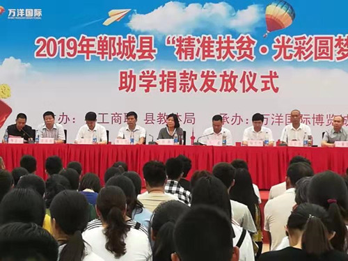 本次“精準(zhǔn)扶貧·光彩圓夢”由縣萬洋集團(tuán)慷慨解囊、傾情相助,共捐資20萬元,對100名品學(xué)兼優(yōu)的貧困學(xué)子給予資助,為鄲城的教育事業(yè)增光添彩。
