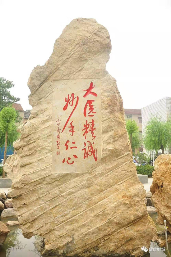 他雖然離開了鄲城,但一直關(guān)注著醫(yī)院的發(fā)展。醫(yī)院領(lǐng)導(dǎo)也多次到上海看望他,向他匯報醫(yī)院近年來的發(fā)展情況。2016年,鄲城縣人民醫(yī)院院長于健到上海看望他,聽到醫(yī)院近年來快速健康的發(fā)展進程,周老先生非常高興,欣然提筆寫下“大醫(yī)精誠,妙手仁心”八個大字。周老先生的題詞被雕刻在一尊文化石上,座落在醫(yī)院文化廣場上。