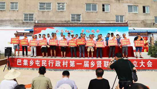 “段志軍每年都捐資捐物回報家鄉(xiāng),他去年捐30萬為巴集大街和屯民村安裝的200多盞路燈已經(jīng)亮了,捐85萬元新建的村室馬上竣工,將是全縣標準最高的,現(xiàn)在又捐60萬元;劉振發(fā)這幾年捐了40萬多,給村里修路、栽樹、幫扶貧困戶,今天又捐26萬;鄉(xiāng)賢會成立之前,大家已累計捐款240多萬元……”在今年8月6日屯民行政村鄉(xiāng)賢會成立儀式上,朱明理宣布捐款名單時多次被雷鳴般的掌聲打斷;“最難忘的就是村口的那棵大楊樹,最好吃的就是中午剩的涼面條、晚上嗑著大蒜吃?!痹谌T峽創(chuàng)業(yè)的劉振發(fā)的發(fā)言勾起了眾多游子的親情回憶;“啃個干饃,灶火里燒個辣椒一砸,撒點兒鹽就是最好吃的?!痹谏糖鹑温毜男炱渖浇舆^話茬說;“事業(yè)越大,工作越忙。但是,他們從四面八方歸來,這就是對家鄉(xiāng)的情誼,我們村肯定會越來越好?!编l(xiāng)賢徐其民感慨地說;“從屯民走出的大學生不少,如今長成了企業(yè)家、行政干部等等,如參天大樹,卻不忘根、不忘本,這就是屯民的驕傲。”從事教育行業(yè)35年的鄲城二高校長趙耀身為屯村一員感觸良多……