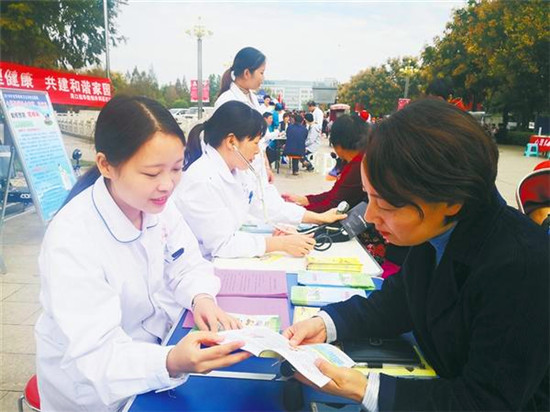 10月10日是世界精神衛(wèi)生日,當(dāng)日上午9時(shí)至11時(shí),周口市衛(wèi)健委組織我市28家醫(yī)院在川匯區(qū)文化廣場舉辦主題為“心理健康社會和諧,我行動(dòng)”的義診活動(dòng)?;顒?dòng)現(xiàn)場,100多名醫(yī)務(wù)人員向群眾提供免費(fèi)疾病咨詢,宣傳普及精神衛(wèi)生健康醫(yī)學(xué)知識,紛紛開出身心健康處方,受到群眾的熱烈歡迎。