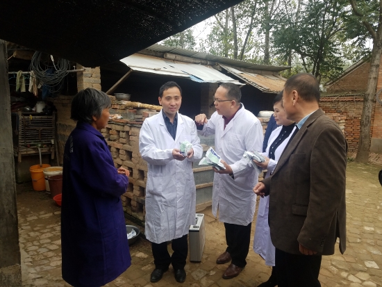 在紅山村豆莊建檔立卡貧困戶牛書山的波爾山羊養(yǎng)殖場,民盟專家組向牛書山贈送了科學養(yǎng)羊書籍和營養(yǎng)獸藥。針對一些圈養(yǎng)羊群出現(xiàn)的不良現(xiàn)象,河南省科技特派員趙慶楓博士從當前羊病的防治、羊群密度、羊的飼養(yǎng)管理等多方面進行了詳細解答和指導。豆莊村村民豆勇身患尿毒癥因病致貧,妻子想通過養(yǎng)雞產(chǎn)業(yè)致富,楊彥濤委員鼓勵她貧困不能失志,做到“弱鳥”先飛,靠養(yǎng)殖增收致富,引導她要想強身健體,“造血”比“輸血”效果好。趙慶楓博士給她家送來防病治病藥物,并向她詳細傳授了大棚內(nèi)柴雞養(yǎng)殖技術及疫病防控要點。村民們激動地說,這樣的扶貧真正扶到了鄉(xiāng)親們的心坎上。