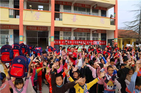 當(dāng)日上午,周大福集團(tuán)組織了15名員工組成義工隊(duì),在周口區(qū)域負(fù)責(zé)人王保安的陪同下,帶著總價值3萬余元的300套愛心物資,送到學(xué)生手中。現(xiàn)場,他們與學(xué)生愛心互動、親切交流,為學(xué)生們背上書包、送上文具,關(guān)心學(xué)生生活和學(xué)習(xí)情況。當(dāng)了解到學(xué)校資金緊張,師生還沒有統(tǒng)一服裝時。岳磊等人表示,將向上級申請,下一步積極為該校師生解決工作裝和校服問題。對此,徐莊小學(xué)師生熱烈鼓掌表示感謝。