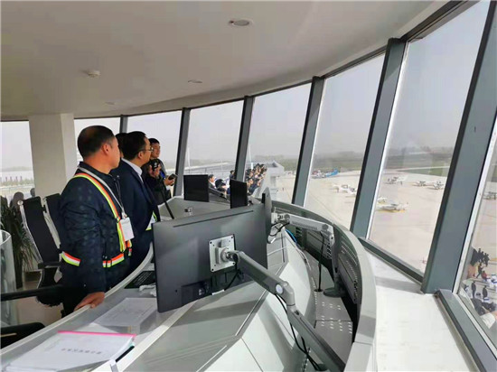 10月29日上午,周口西華通用機(jī)場(chǎng)正式啟用。在機(jī)場(chǎng)工作人員的帶領(lǐng)下,記者來(lái)到機(jī)場(chǎng)運(yùn)行中心塔臺(tái)。塔臺(tái)可以環(huán)視機(jī)場(chǎng)全貌。機(jī)場(chǎng)運(yùn)行中心是機(jī)場(chǎng)指揮運(yùn)行的中樞,對(duì)空指揮系統(tǒng)、氣象自動(dòng)觀測(cè)系統(tǒng)、ADS-B監(jiān)視系統(tǒng)和機(jī)場(chǎng)全景監(jiān)控系統(tǒng)均在運(yùn)行中心塔臺(tái)內(nèi)。