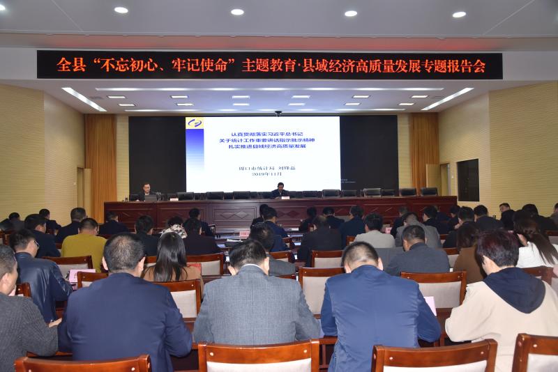 11月14日,扶溝縣召開(kāi)“不忘初心、牢記使命”主題教育·縣域經(jīng)濟(jì)高質(zhì)量發(fā)展專題報(bào)告會(huì),特邀市統(tǒng)計(jì)局黨組成員、總統(tǒng)計(jì)師劉鋒磊作專題輔導(dǎo)。張穎波、姜永來(lái)、張建中、段然、王霄靈、趙紅亮、閆忠玉、尚守永、曹來(lái)凌等縣領(lǐng)導(dǎo)聆聽(tīng)報(bào)告。縣委常委、常委副縣長(zhǎng)王霄靈主持會(huì)議。