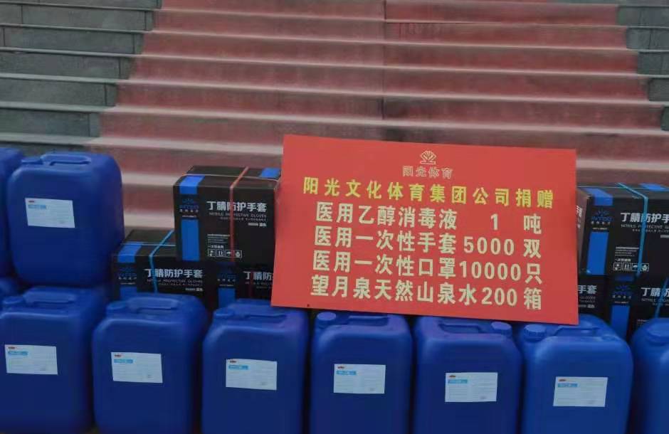 據(jù)了解,鹿邑陽(yáng)光文化體育集團(tuán)公司是一家以運(yùn)動(dòng)健身業(yè)務(wù)為主的集團(tuán)公司,設(shè)有3個(gè)健身館和1個(gè)擊劍館。該公司成立以來(lái),積極參與公益愛(ài)心行動(dòng),在助學(xué)(孤)、助困、助老、助殘等方面發(fā)揮了重要作用。自疫情發(fā)生以來(lái),為給全縣疫情防控工作貢獻(xiàn)一份力量,陽(yáng)光體育經(jīng)多方籌備,提前向生產(chǎn)廠家預(yù)定相關(guān)物資,并派出多路人員在生產(chǎn)廠家進(jìn)行守候取貨。此次共捐贈(zèng)醫(yī)用乙醇消毒液一噸、防護(hù)手套5000雙、口罩10000只、礦泉水200箱。