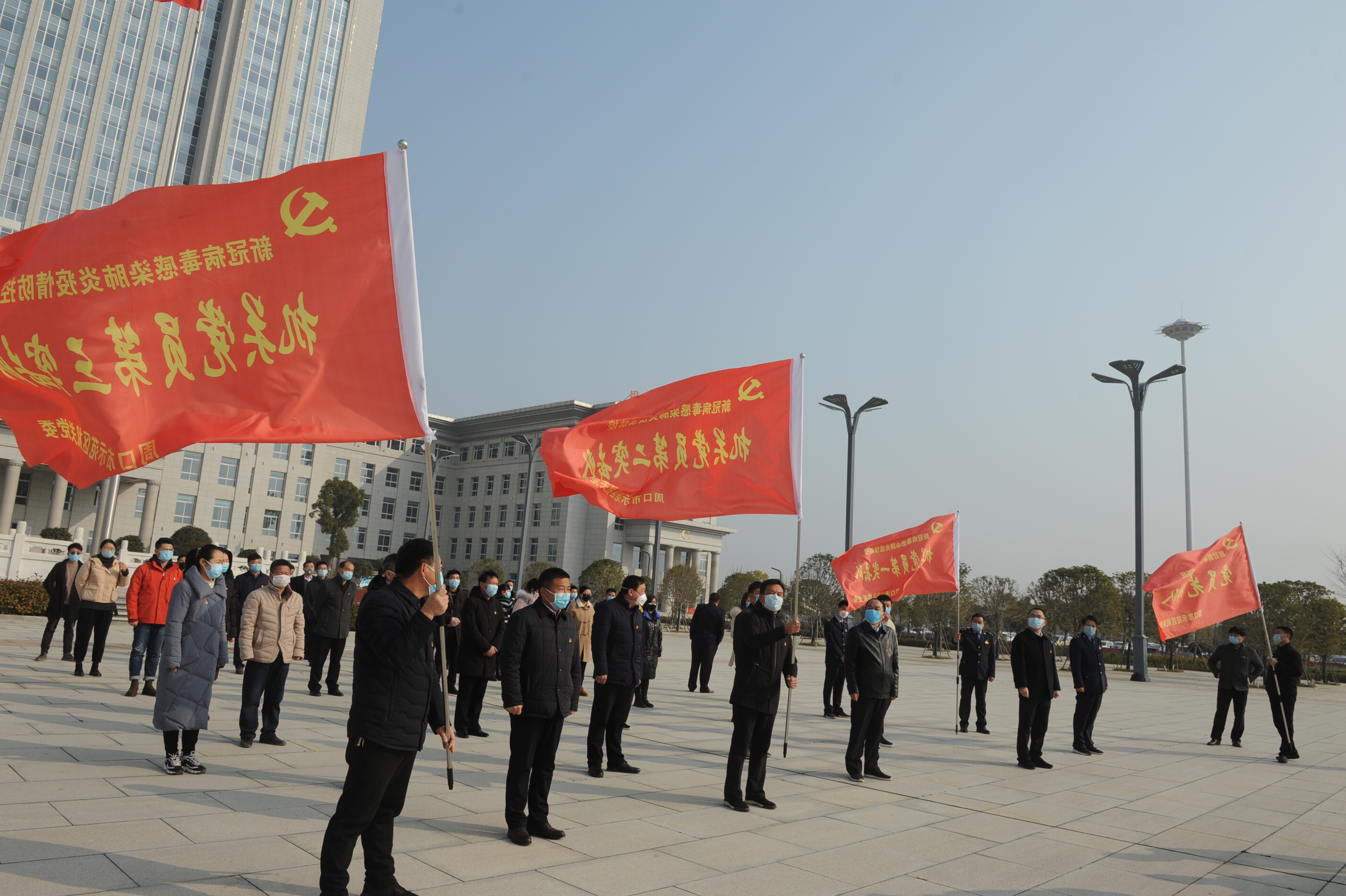 2月3日上午,在國旗下、黨旗前,示范區(qū)廣大黨員干部面對(duì)黨旗重溫入黨誓詞,充分展示了廣大黨員干部主動(dòng)請(qǐng)戰(zhàn)到戰(zhàn)“疫”一線的決心和信心。隨后,區(qū)機(jī)關(guān)黨委相關(guān)領(lǐng)導(dǎo)向黨員先鋒隊(duì)和3個(gè)黨員突擊隊(duì)授予隊(duì)旗,希望他們堅(jiān)守在一線、圓滿完成疫情防控的各項(xiàng)任務(wù)。