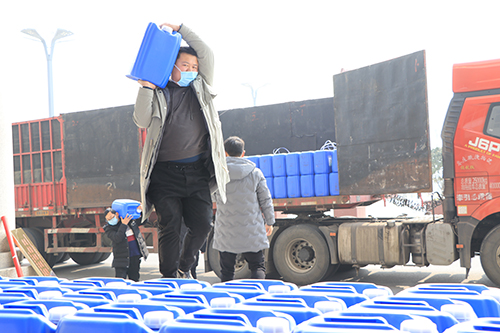 該公司總經(jīng)理馬媛媛介紹,她老家是周口的,在鄭州開辦的公司,公司業(yè)務主要是搞醫(yī)療物質(zhì)配送。“當前嚴峻的疫情形勢真得讓人很擔心,為了能夠給家鄉(xiāng)提供一些力所能及的幫助,公司特意購置了這批醫(yī)用物質(zhì)以解家鄉(xiāng)防控疫情的燃眉之急。”馬媛媛介紹,為了能在市場上購到這批貨物,公司從除夕晚上就開始聯(lián)系貨物,打了近百個電話,直到大年初四才在山東的一家公司聯(lián)系到貨源,排了6天隊之后,才購到10000斤消毒液、4000副醫(yī)用手套,貨到之后,公司馬不停蹄,立即拉了過來,讓這批貨物盡快派上用場。