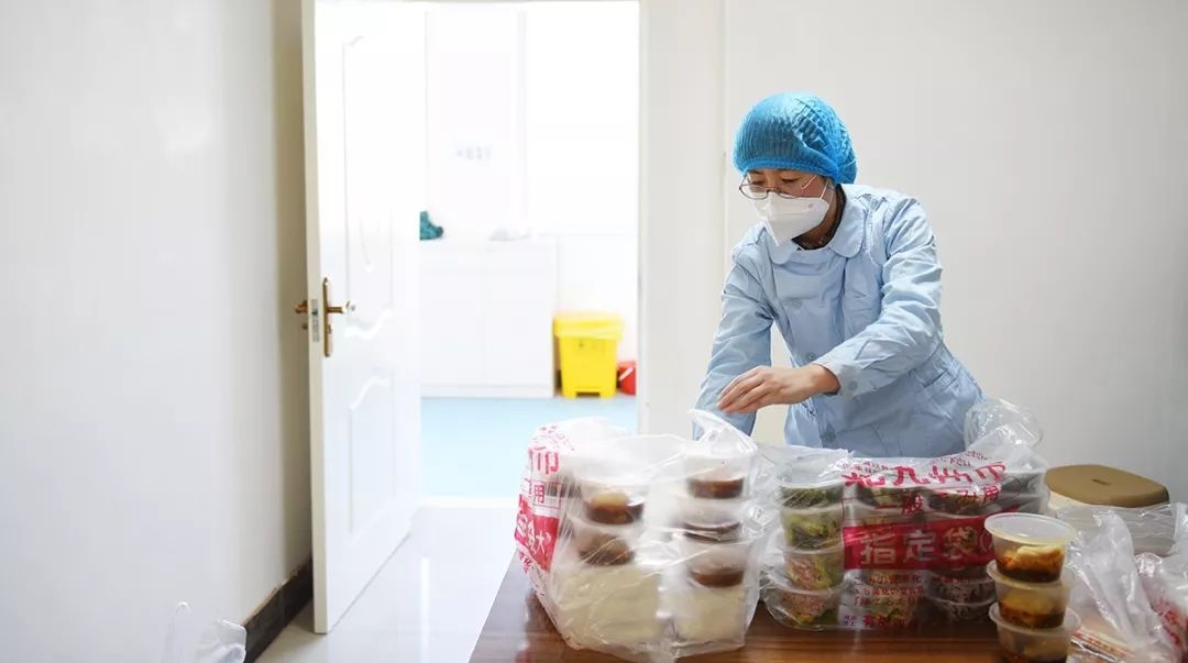 又到了打飯的時(shí)間,鄲城縣人民醫(yī)院新冠肺炎定點(diǎn)治療隔離病區(qū)護(hù)士長(zhǎng)莊坤掰著手指一個(gè)一個(gè)向餐廳介紹病人的情況,用“了如指掌”來(lái)形容最恰當(dāng)不過(guò)。一邊說(shuō)話(huà),她一邊熟練地將幾筐飯菜分類(lèi)打包,每一份都用食品袋包好,哪是確診病人的,哪是留觀(guān)病人的,每一份上面都寫(xiě)上名字,再由護(hù)士分別送去。