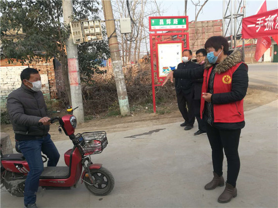 臘月三十那天,餃子剛剛包好,王愛月同志臨危受命,根據(jù)鎮(zhèn)黨委安排部署,果斷迅速組織布防嚴(yán)控,立即進(jìn)入疫情防控第一線。鄉(xiāng)鎮(zhèn)召集各村黨支部書記召開會議,分析研判嚴(yán)峻形勢,要求各村支部發(fā)揮基層組織“戰(zhàn)斗堡壘”作用,立即摸清情況,穩(wěn)定群眾情緒,增強(qiáng)群眾信心;鎮(zhèn)中心衛(wèi)生院給各村醫(yī)安排防疫工作。會后,村兩委班子第一時間成立了奉母鎮(zhèn)后邵村防控新冠肺炎疫情領(lǐng)導(dǎo)小組,王愛月?lián)胃苯M長,協(xié)助支部書記制定全村防控應(yīng)急處置方案,負(fù)責(zé)處理疫情持續(xù)期間各類防控工作,結(jié)合后邵村實際,從疫情摸排、防控物資采購、應(yīng)急值守、各場所消毒、道路設(shè)卡等各方面全面做好準(zhǔn)備。全村組建6個排查組對全村居民逐戶排查,她親自帶隊逐戶排查所有外來人員,確保不漏一戶一人。之后,建立排查臺賬,及時準(zhǔn)確掌控疫情動態(tài),為每位務(wù)工返鄉(xiāng)人員發(fā)放了注意事項告知書和宣傳單,對外出返鄉(xiāng)人員落實了包戶責(zé)任制。同時建立防控微信群,實時掌握他們的身體情況,解答他們的疑惑,全力做好心理疏導(dǎo)工作,切實解決鄉(xiāng)里鄉(xiāng)親的困難問題。