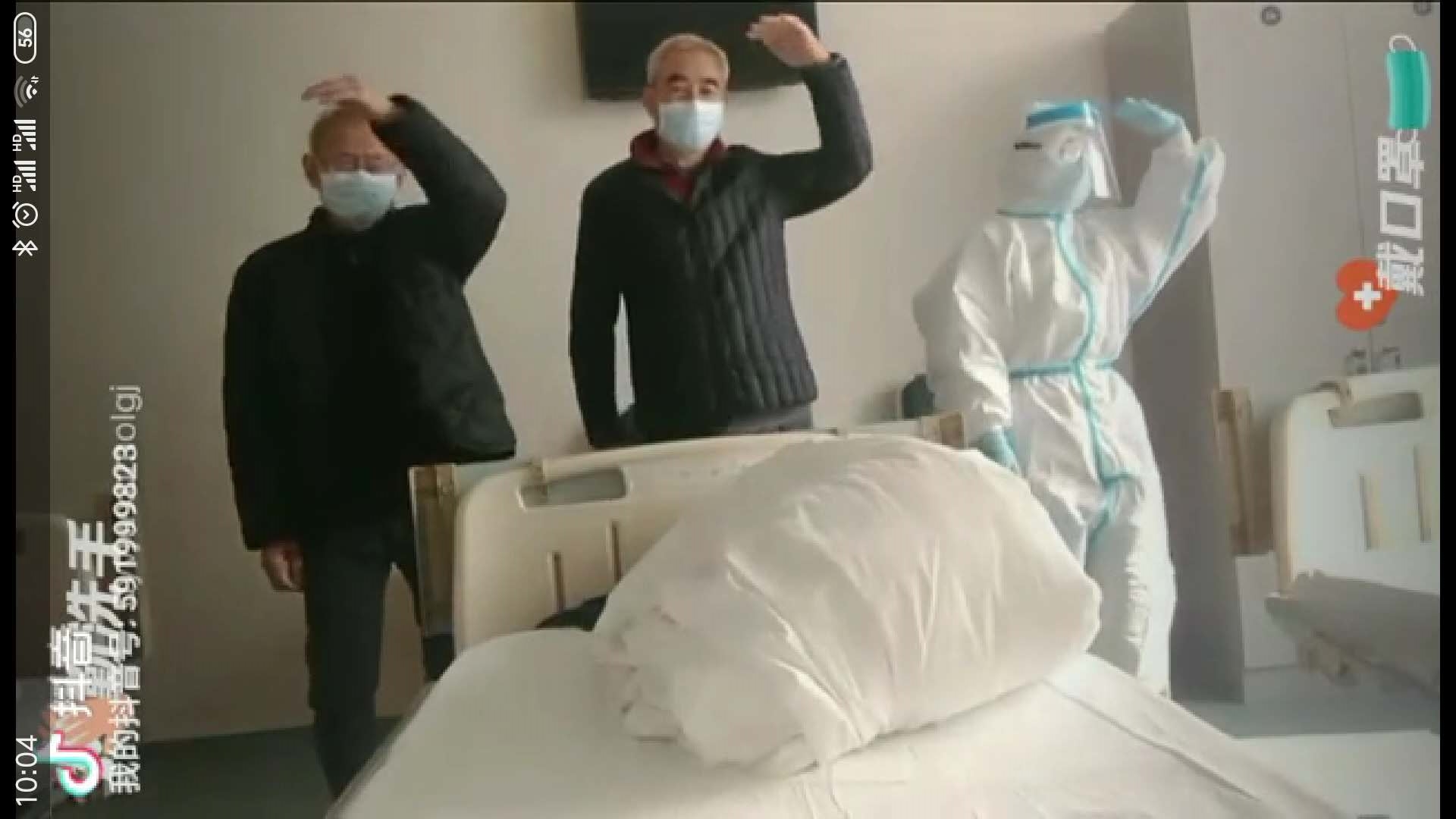 3月6日,周口援鄂醫(yī)療隊的微信群因為一段抖音視頻而變得歡樂。視頻中,兩位老人和一位穿著防護服的護士,正踩著“小黃鴨”的魔性節(jié)奏在病床前尬舞……