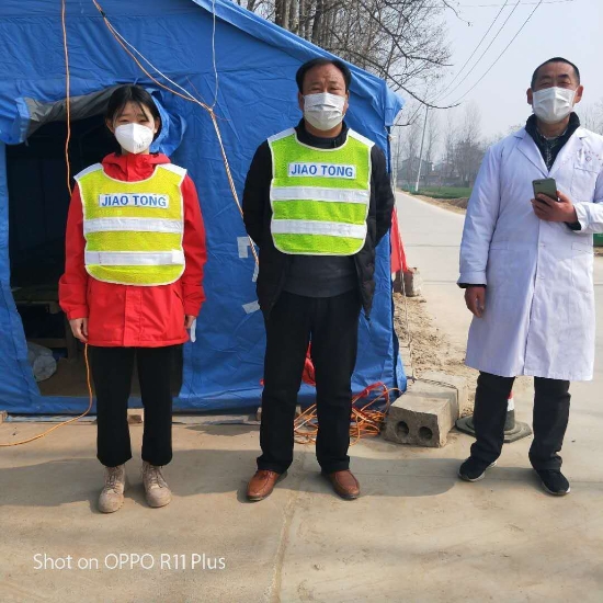 3月9日,春雨淅瀝,劉志杰仍在村口卡點冒雨堅守崗位。女兒劉苗苗此時正在村里登記排查,為村民測試體溫,父女倆一個內(nèi)防疫情輸入,一個外防疫情擴散,點上嚴管,面上嚴查,這感人一幕,將會深深印刻在任莊行政村村民們的腦海中!