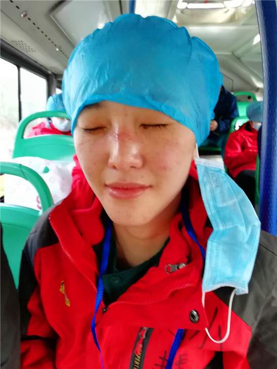 趁新疆隊護士接班,孫慧慧又抓緊向她請教了自己在工作中遇到的各種問題,直到吃透護士站的一切工作流程和醫(yī)療處理系統(tǒng)的各種設(shè)置。這第一個“治療+辦公班”,孫慧慧上了整整6個半小時,分體衣濕透,鼻梁也被護目鏡壓傷起了皰。
